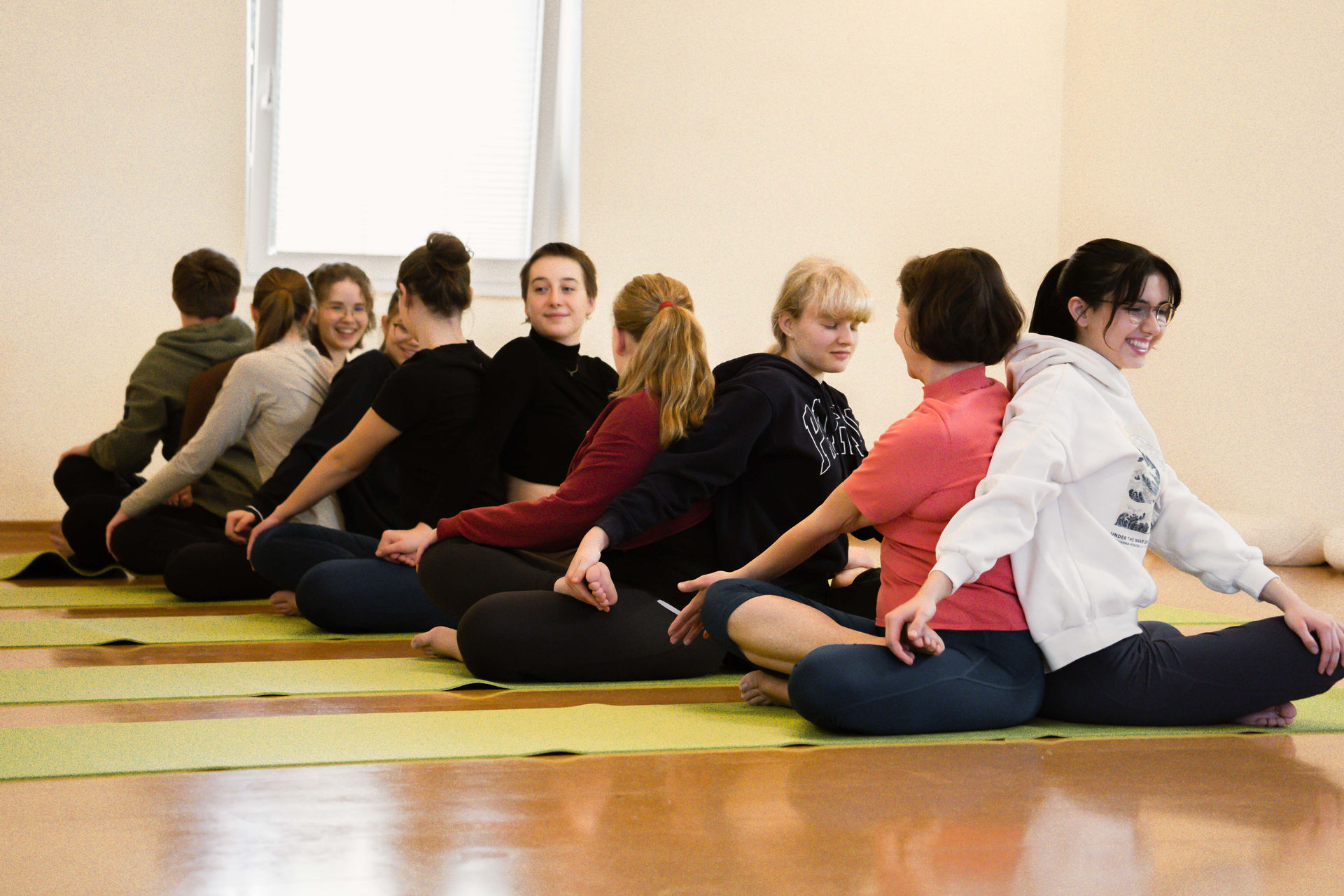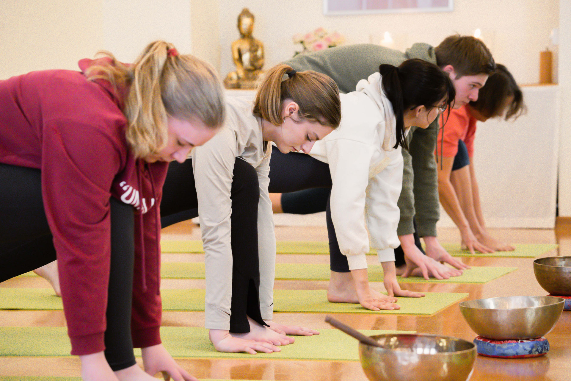 Wir üben in kleinen Gruppen mit bis zu 8 Jugendlichen. Der Schwerpunkt aller Bemühungen liegt auf der Entspannung. Verschiedene Stressbewältigungsstrategien und Entspannungstechniken werden vermittelt. Das Ziel ist es, das Gelernte in den Alltag der Jugendlichen zu integrieren. Zahlreiche Yogahaltungen und dynamische Yogasequenzen wie z.B. den Gruß an den Rücken, Sonnengruß, Mondgruß und die Bewegungssequenz zur Beweglichkeit der Wirbelsäule werden gelernt und jeweils als Aufwärmsequenz geübt.